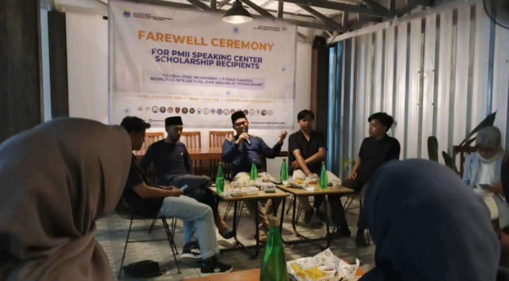 LTNNU Ciamis — Pergerakan Mahasiswa Islam Indonesia (PC PMII) Kabupaten Ciamis mengambil langkah progresif dengan memberangkatkan 10 kader terpilih untuk mendalami Bahasa Inggris di Kampung Inggris, Pare, Kediri, Jawa Timur. Acara pelepasan yang bertajuk Farewell Ceremony ini digelar di Café Hollow Space, Ciamis.